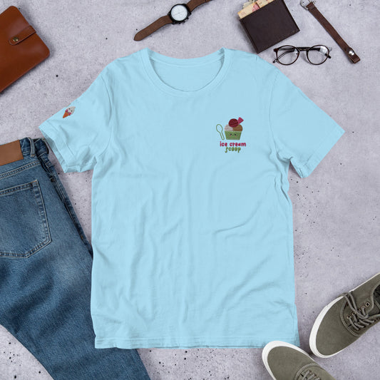 "Ice Cream Sundae" Ocean Blue Embroidered Cotton Unisex T-shirt (S-4XL)