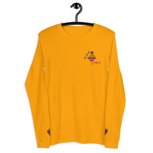 "Strawberry Parfait" Marigold Long Sleeve Tee with Cuff Embroidery (XS-2XL)