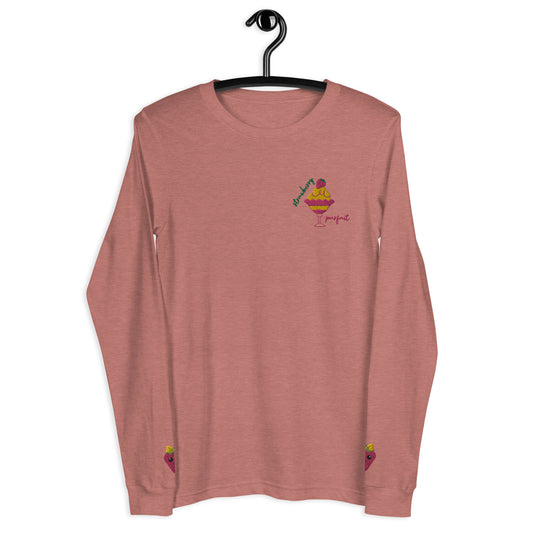 "Strawberry Parfait" Heather Mauve Long Sleeve Tee with Cuff Embroidery (XS-2XL)