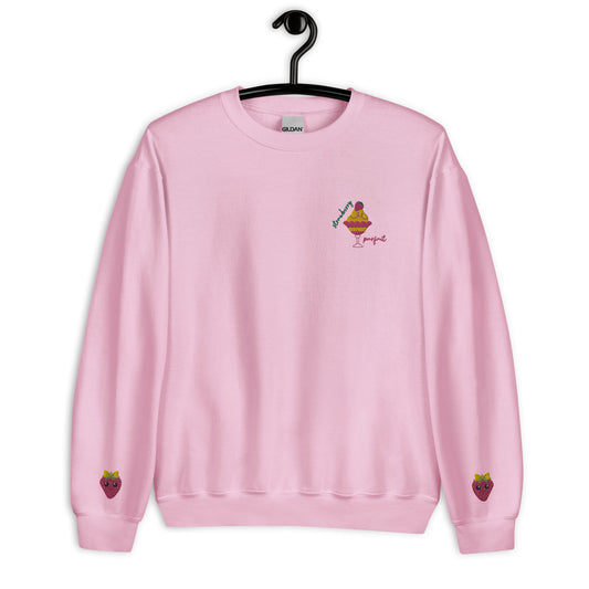 "Strawberry Parfait" Light Pink Sweatshirt with Cuff Embroidery (S-3XL)