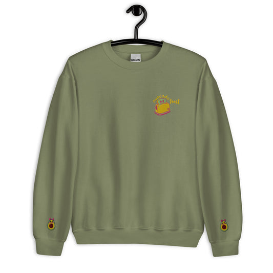 "Avocado Toast" Olive Green Sweatshirt with Cuff Embroidery (S-3XL)