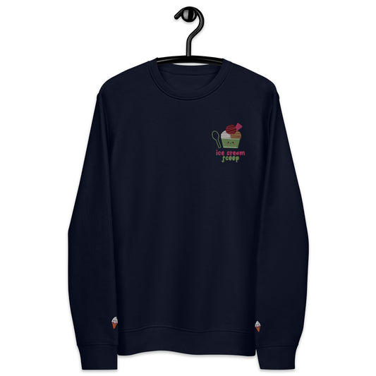 "Ice Cream Sundae" French Navy Organic Cotton Sweatshirt with Wrist Embroidery (S-2XL)